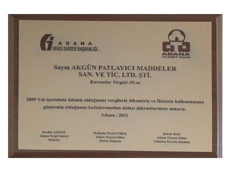 Our company was ranked 49th among the top 100 highest corporate taxpayers of Adana province in 2009 .